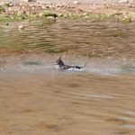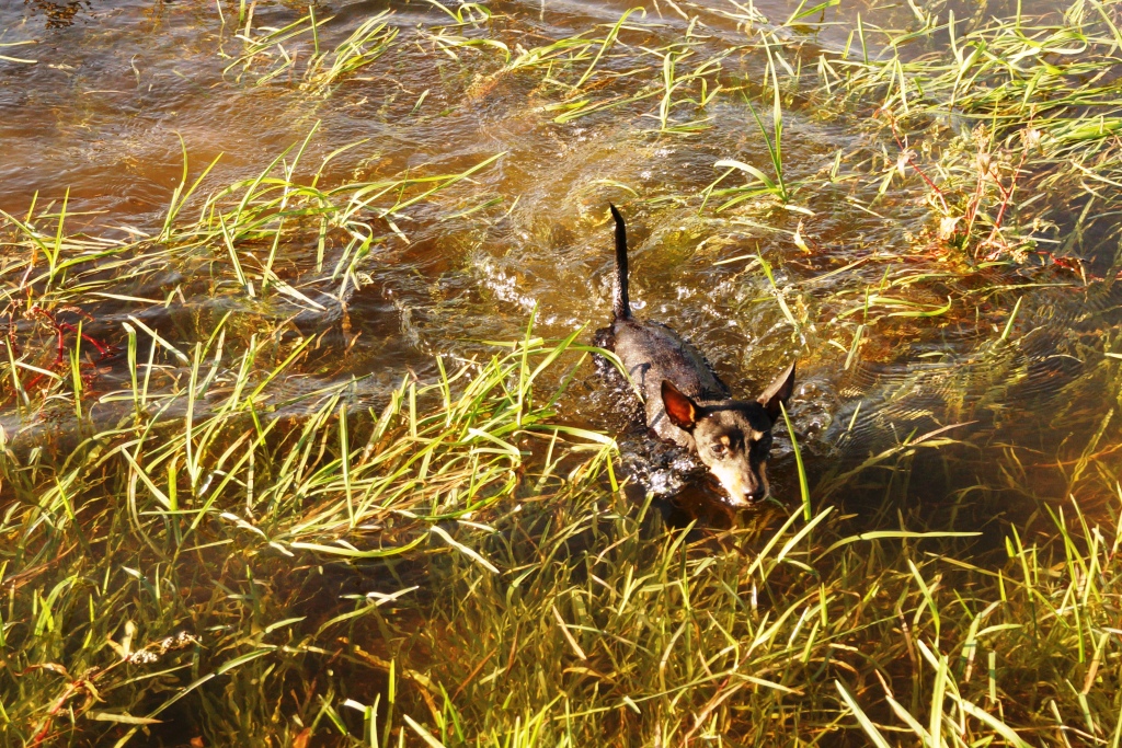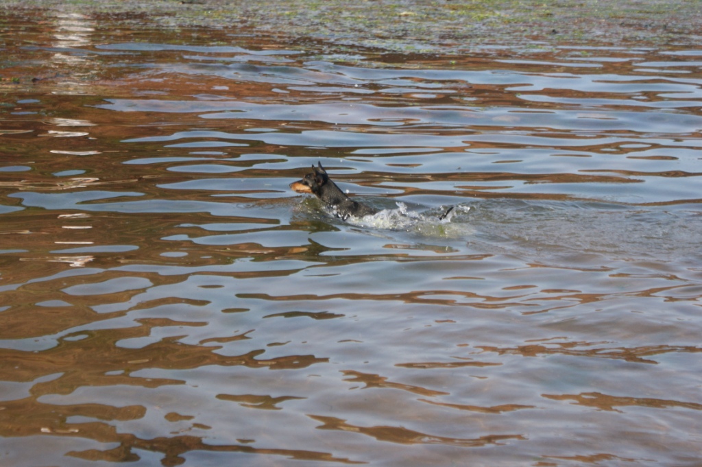 I am told by almost every other ETT owner in the universe that their dogs hate water, with a passion. This is considered to be a breed trait, along with the love of sunbathing which every black and tan seems to share.