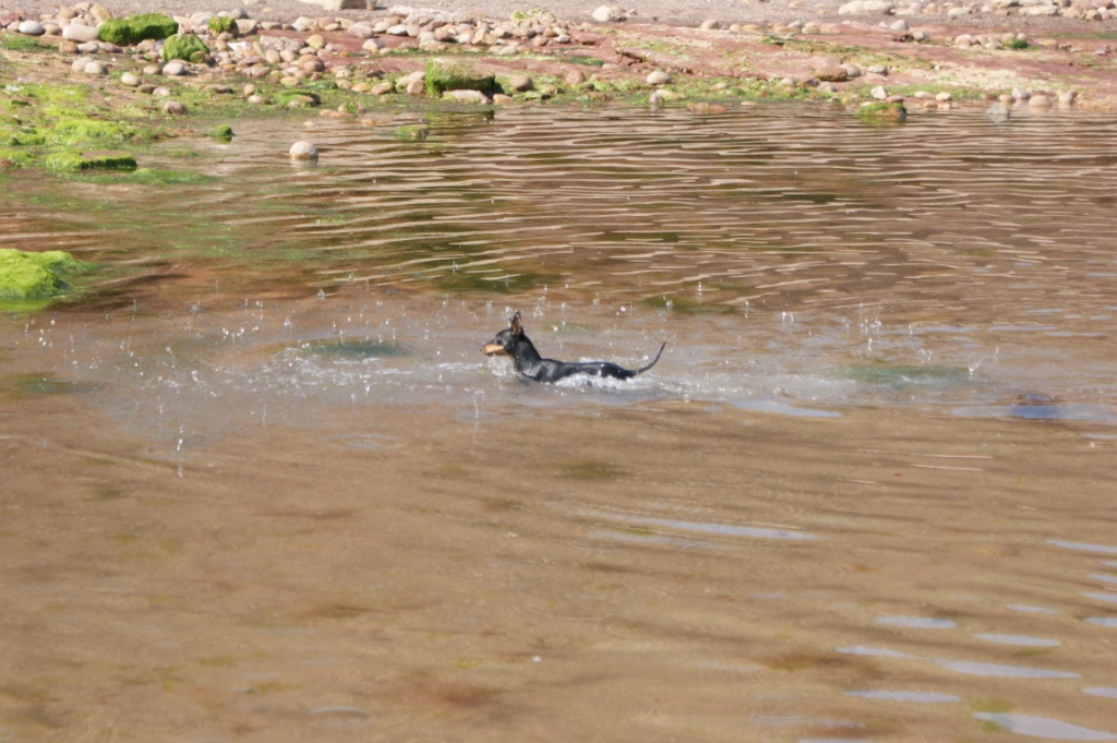 But Our proud natives live in Devon. And they learn to enjoy the splashing if the water isn’t too cold or too rough. It helps if they see other dogs having fun, and if there is a reason to dive in – like a ball or another dog to chase – or a dead crab to discover. The more they try it the more they like it and the older they get the more they relax and trust that they might not melt on contact.