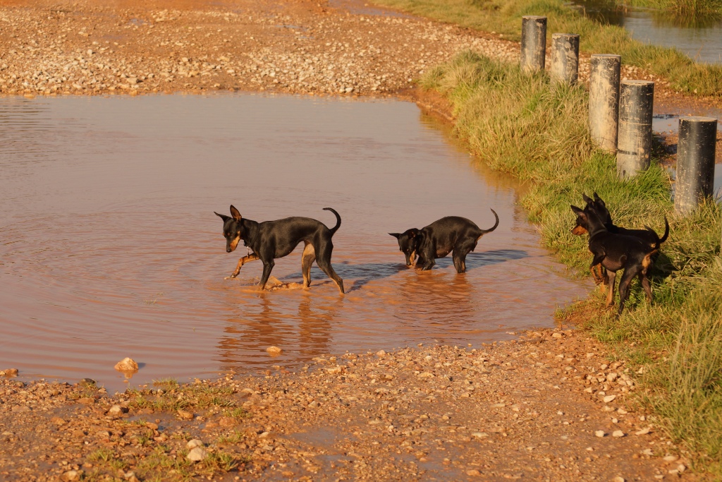 ETT’s don’t like water. But their coats dry very quickly and mud doesn’t stick to them, so mostly we don’t mind.