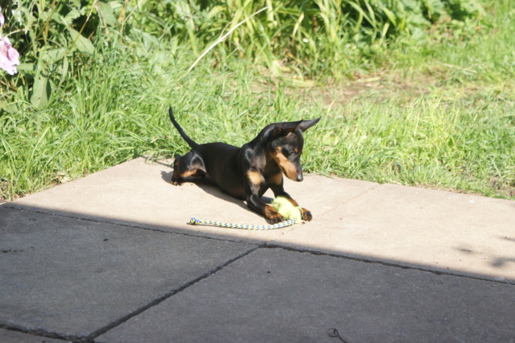 Ella is an elegant and free spirited girl who has definitely inherited her parents’ zest for life and love of speed. She is an absolute delight to live with, keen to learn and do as she is asked (if she can stand still for long enough) and communicates her own wishes with absolutely clarity. Play is fast and furious, and usually ends with the floor completely covered with every toy from the toy box.