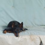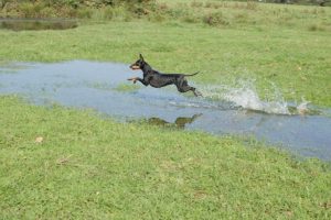 A real hundred mile an hour dog. Misty is at her absolute happiest flying with all four feet off the ground at a flat out gallop. Although she has never been given the opportunity to try her skills out on a rat, she has inherited all the speed and agility needed and despatches her ball and soft toys with a terrifying efficiency, shaking them relentlessly long past any possible point of recovery. When playtime finally comes to an end Misty is a real snuggle-bunny and cuddles up as close as she possibly can.